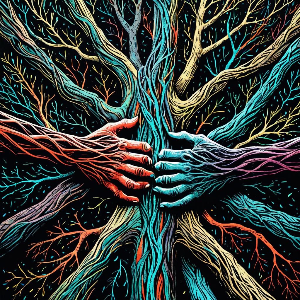 Full body graphic of a phoenix rising from flames, intricate connection, vibrant colors, artistic energy flow
