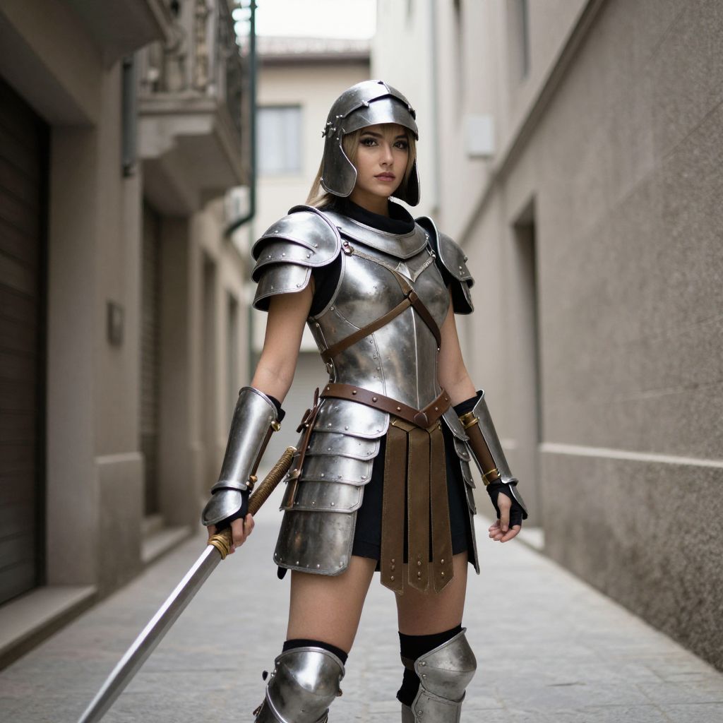 Female Gladiator Cosplay in Alley