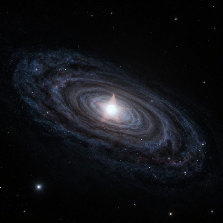 In a skyless void, galaxies orbit a single off-switch shaped star, whose flick may awaken or end existence.