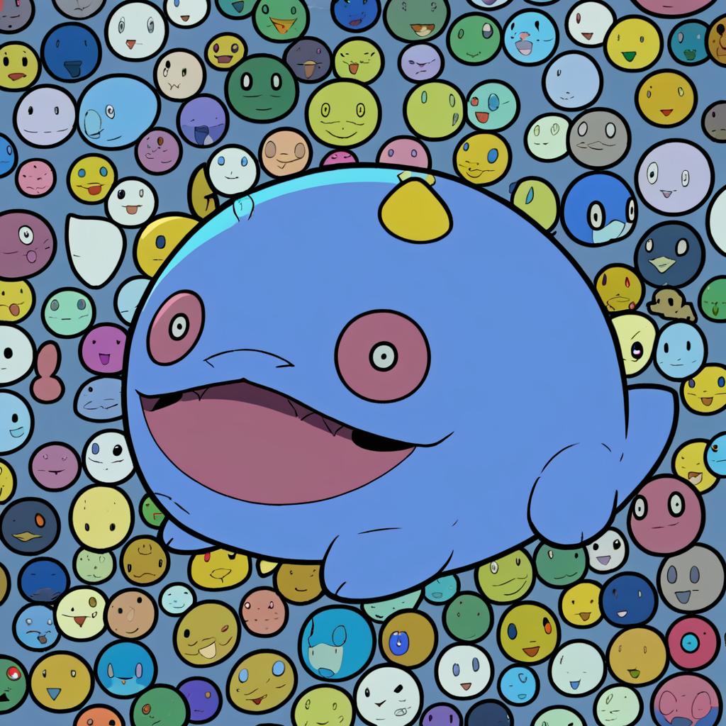 Illustration of Gulpin, pokemon in the style of Morii shizuki