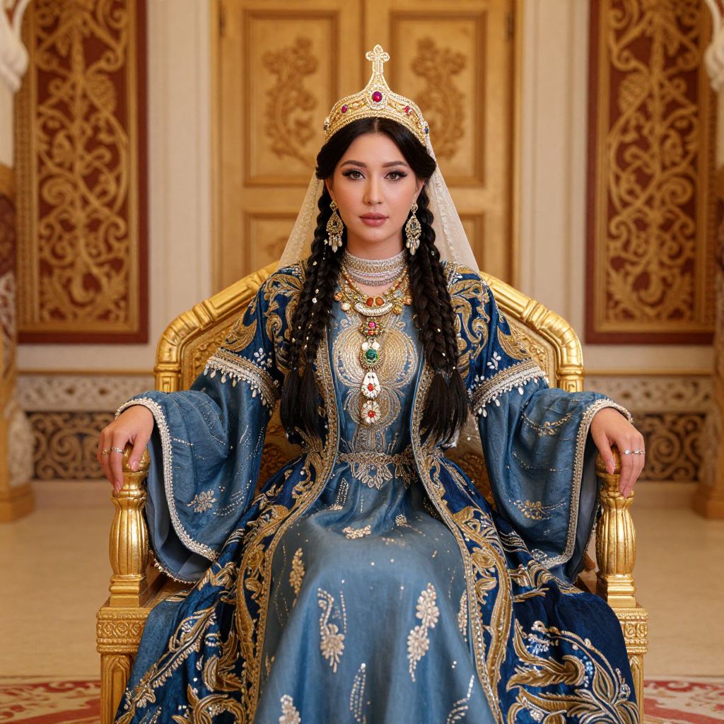 Regal Kazakh Woman on Throne
