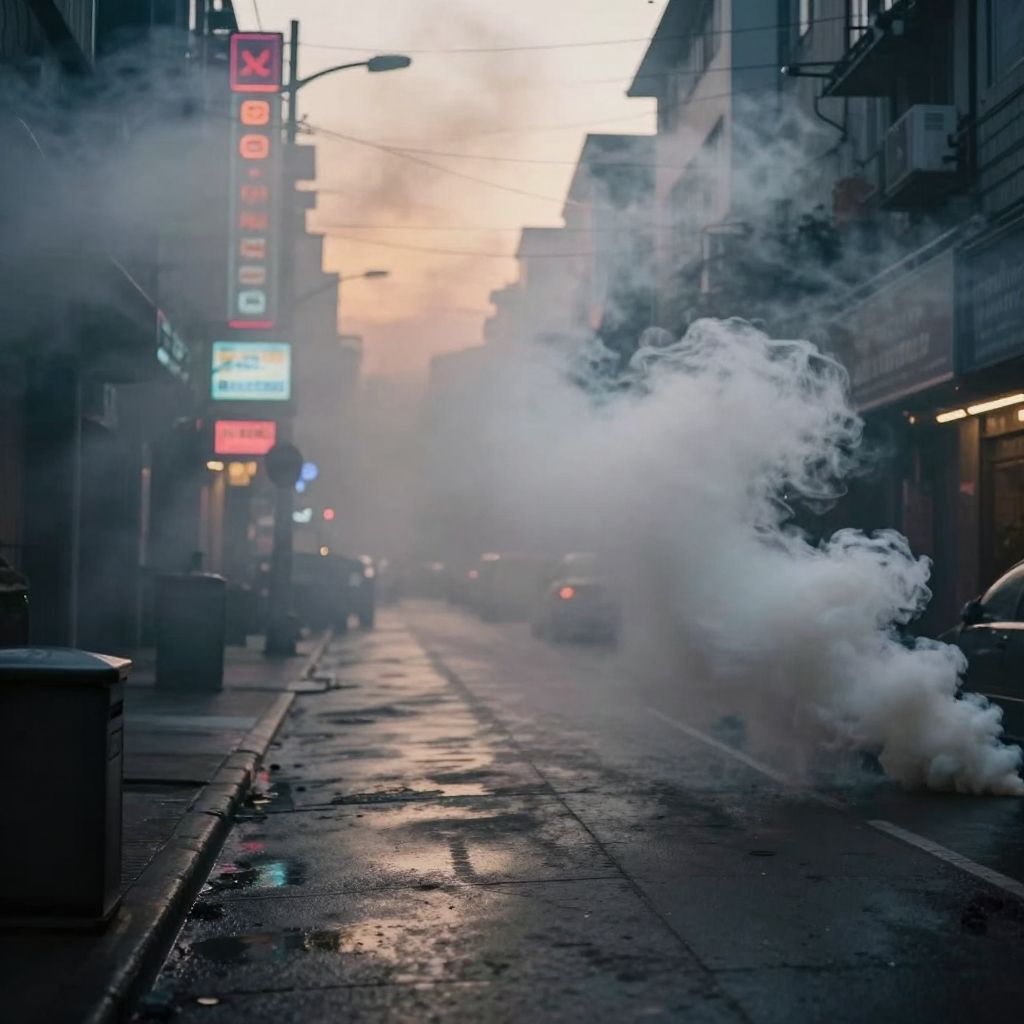 Moody Urban Street Scene with Smoke
