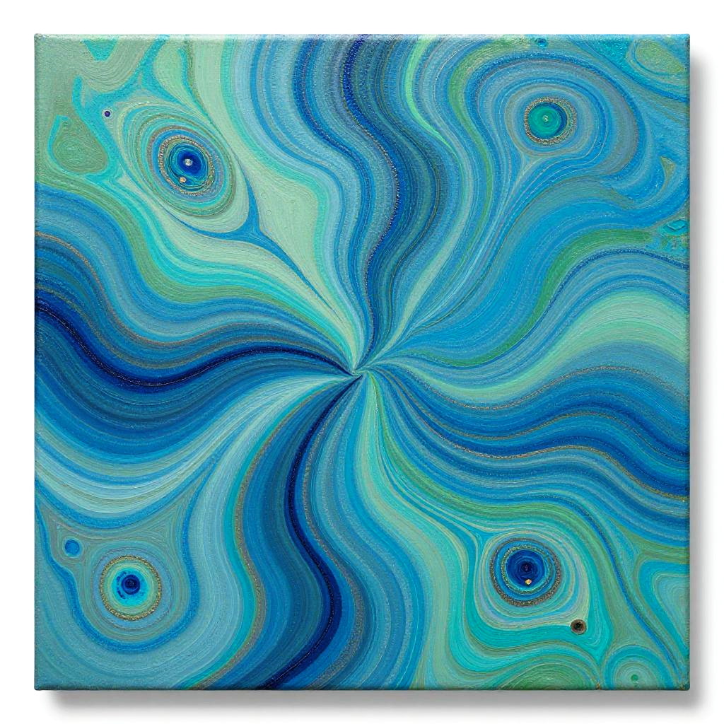 Turquesa abstract painting with swirling patterns and fluid shapes, inspired by ocean waves and gemstones, rich gradients of blues and greens, dynamic brush strokes and artistic texture