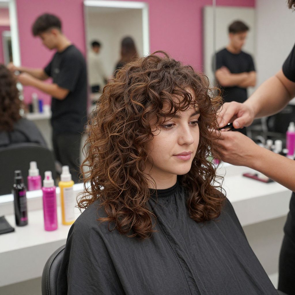 Curly Layered Hairstyle in Modern Salon