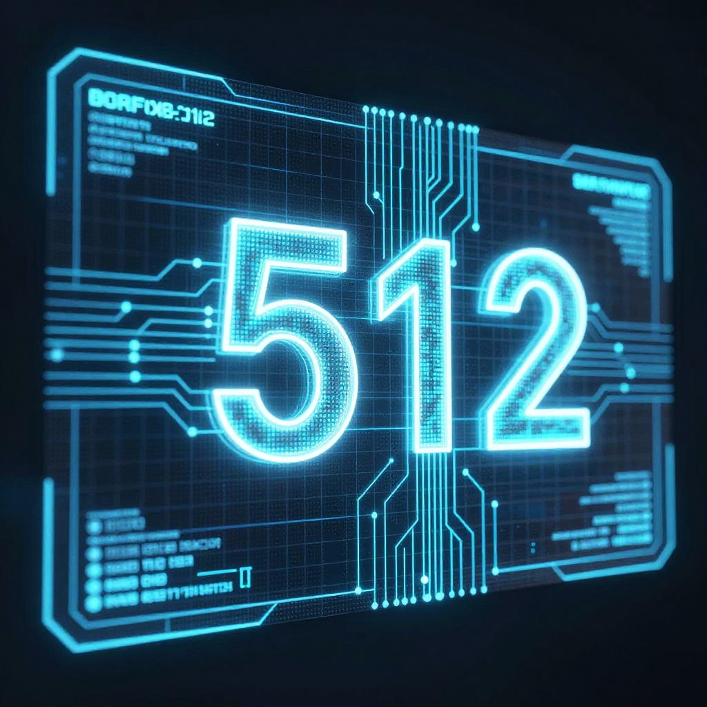 512г—512 sci-fi interface design, holographic display with numeric data streams and circuitry, glowing lines and grids in blue and cyan shades, futuristic computer system visualization with depth and a high level of detail
