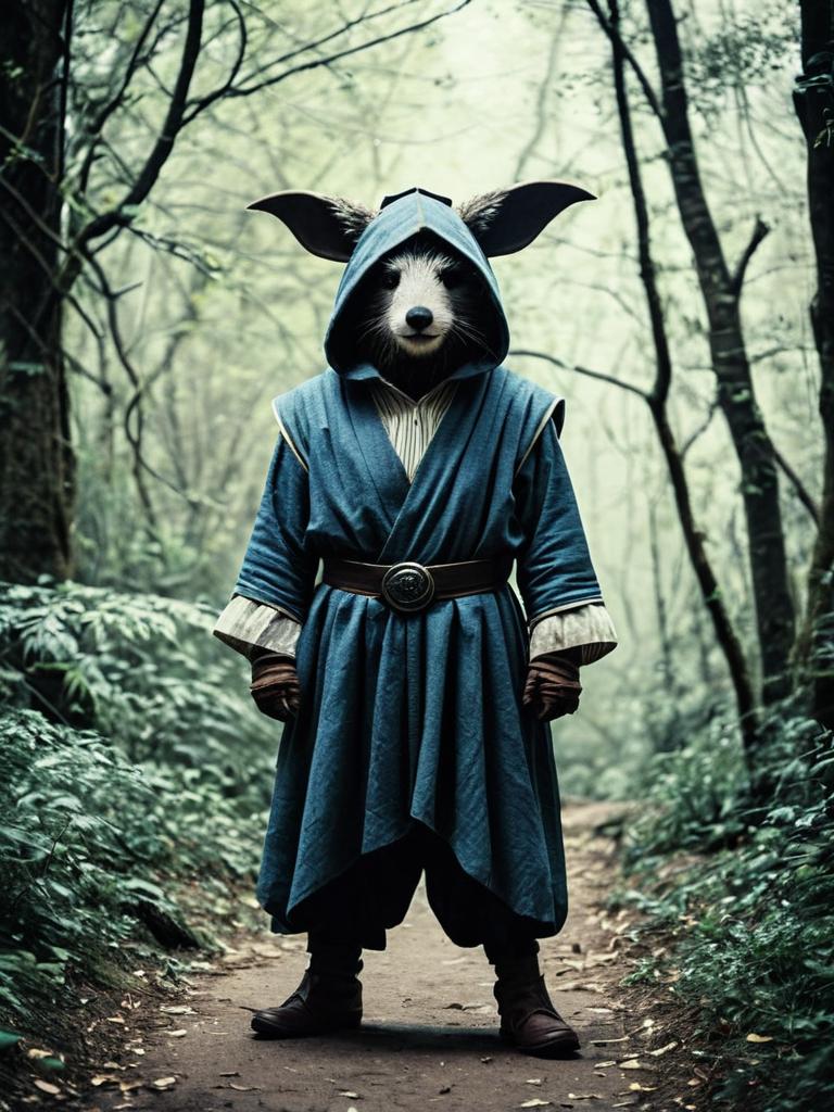 Person in Toto Costume, full-body cosplay photo in fantasy backdrop