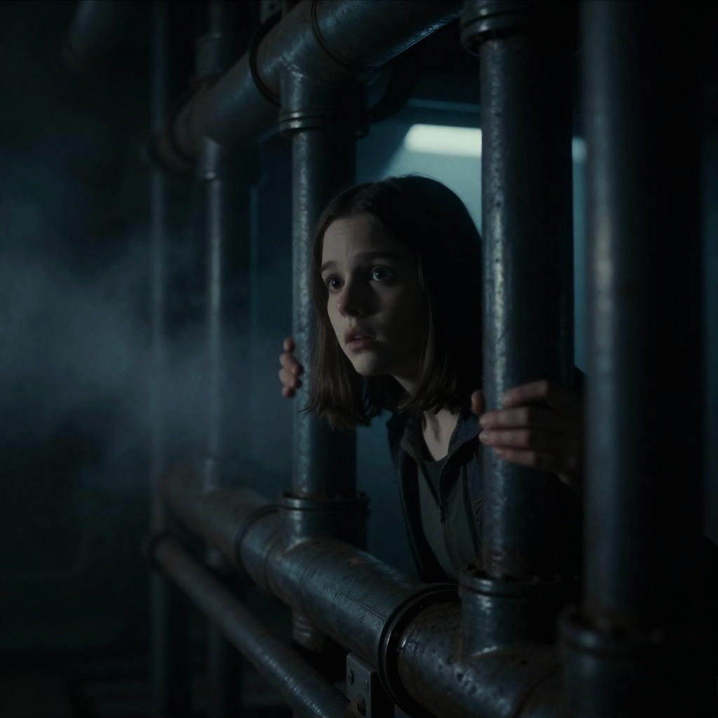 Hiding Teen in Derelict Sci‑Fi Ship