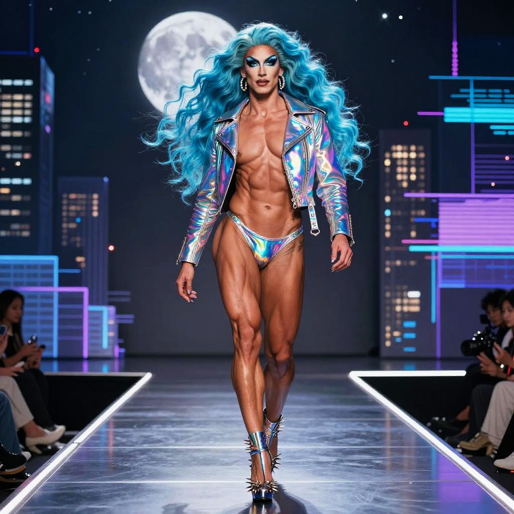 Hyper-Realistic Cyberpunk Drag Queen Bodybuilder