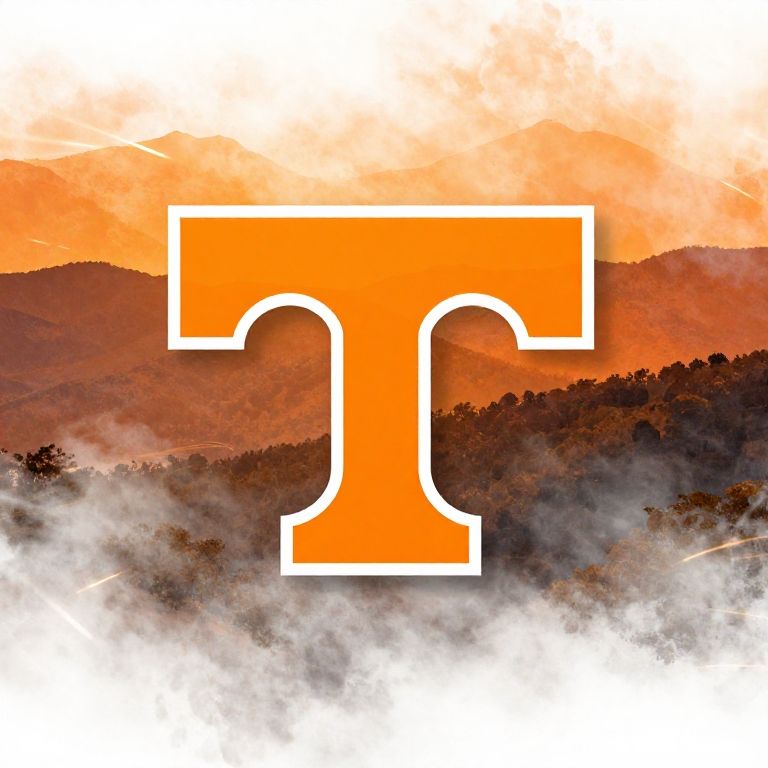 Cool Tennessee Vols wallpaper showcasing a vibrant smoky mountain horizon blended with the classic orange and white Tennessee Vols logo, rendered in a sleek digital art style with energetic light streaks and textured overlays for a powerful game-day atmosphere.