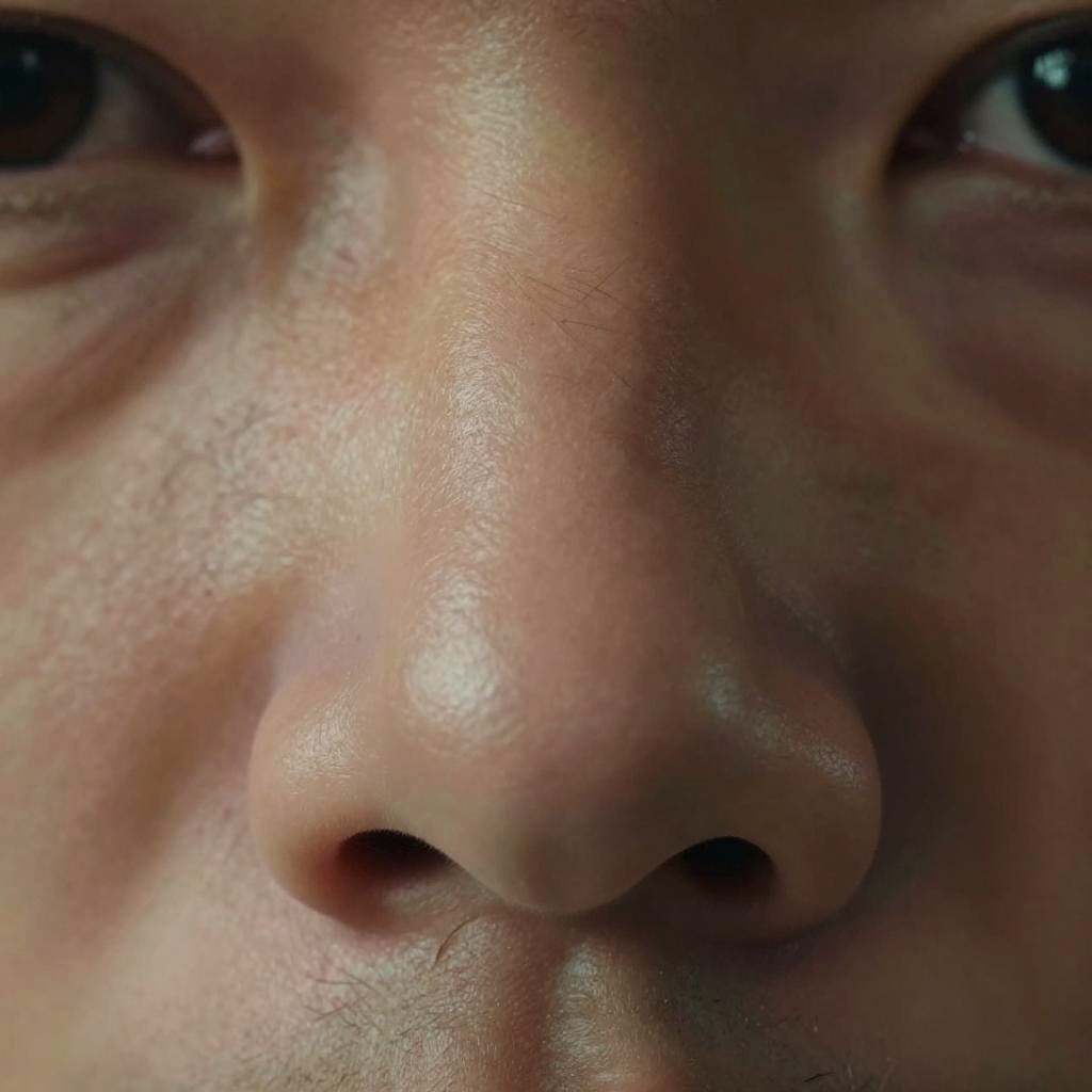 Close-up of Gonzos nose, exaggerated size with realistic textures, intricate lighting highlighting each pore and hair, photorealistic style, cinematic depth of field