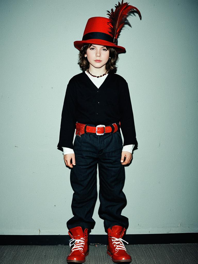 Madness costume, 1boy, solo, male focus, hat, standing, pants, shoes, looking at viewer, belt, full body, red footwear, long sleeves, jewelry, closed mouth, hat feather