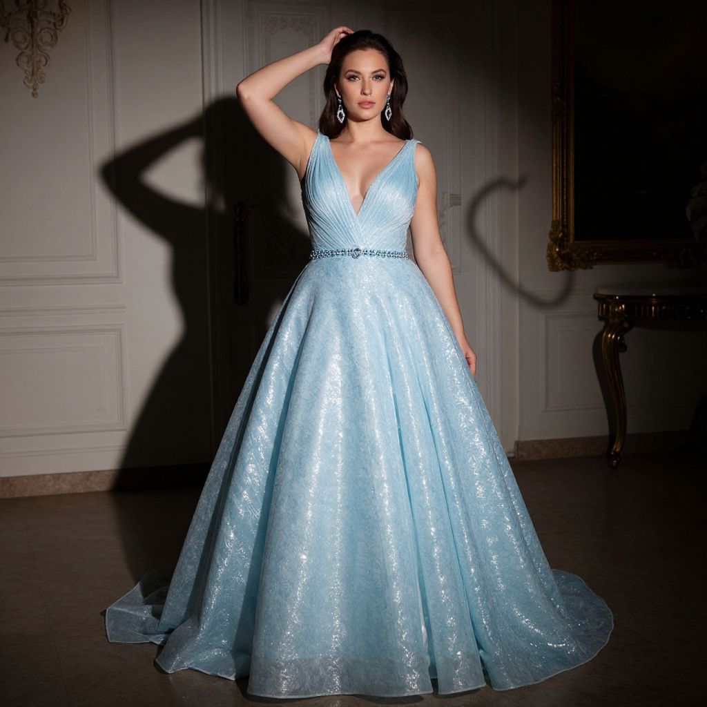 Elegant Curvy Woman in Ice Blue Gown