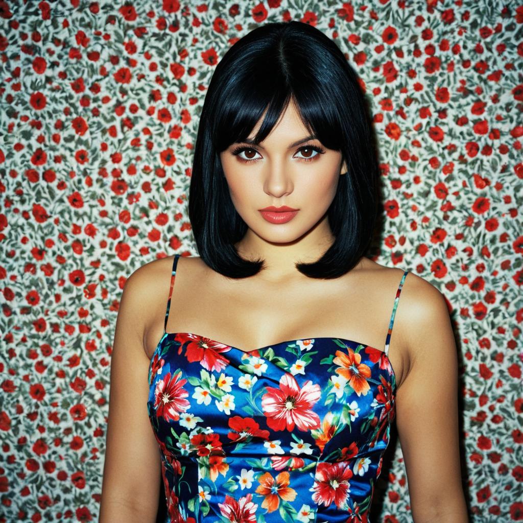 Woman in Floral Dress with Black Hair