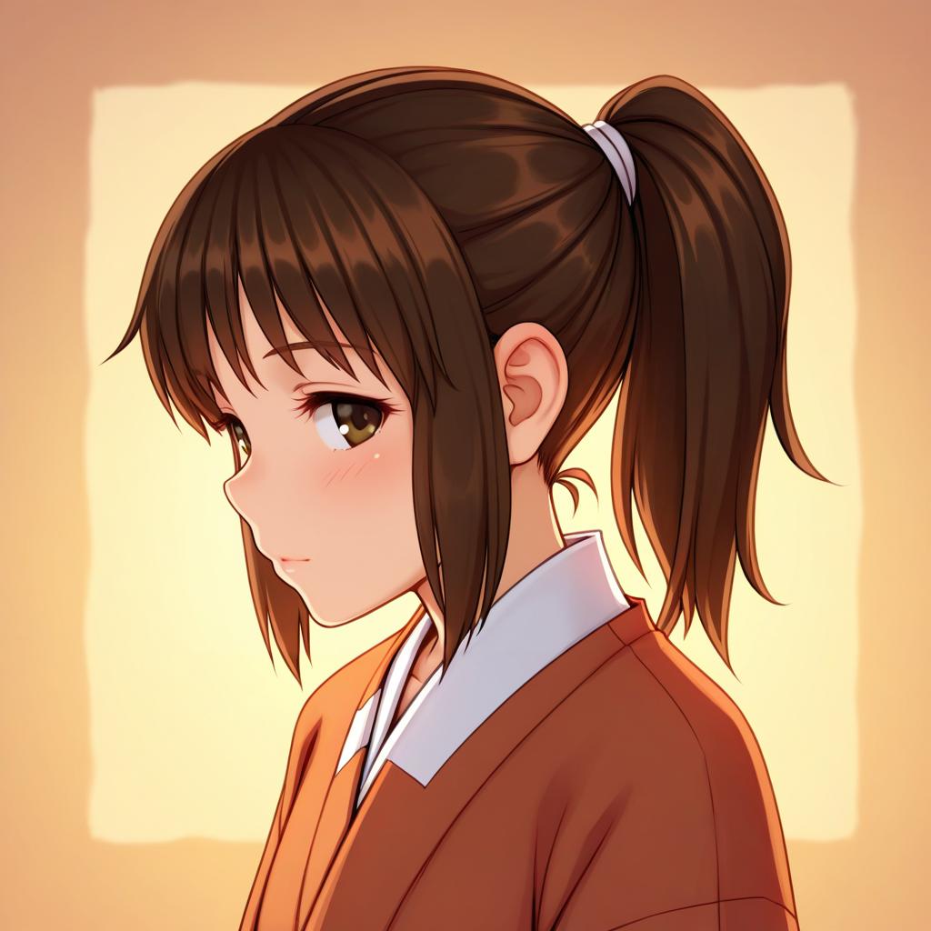Ogino chihiro, sen to chihiro no kamikakushi, 1girl, brown eyes, brown hair, long hair, ponytail, by artist monorus, illustrious