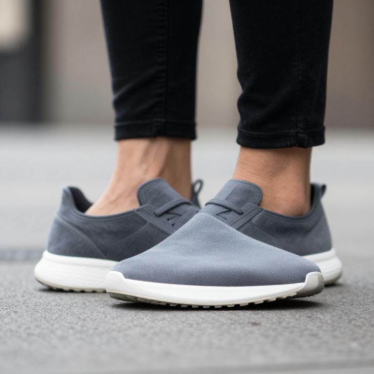 Retro sneaker vibes, a close-up of faded denim sneakers with leather accents, sitting on a wooden bench in a retro-inspired bedroom, soft golden hour light, realistic photography