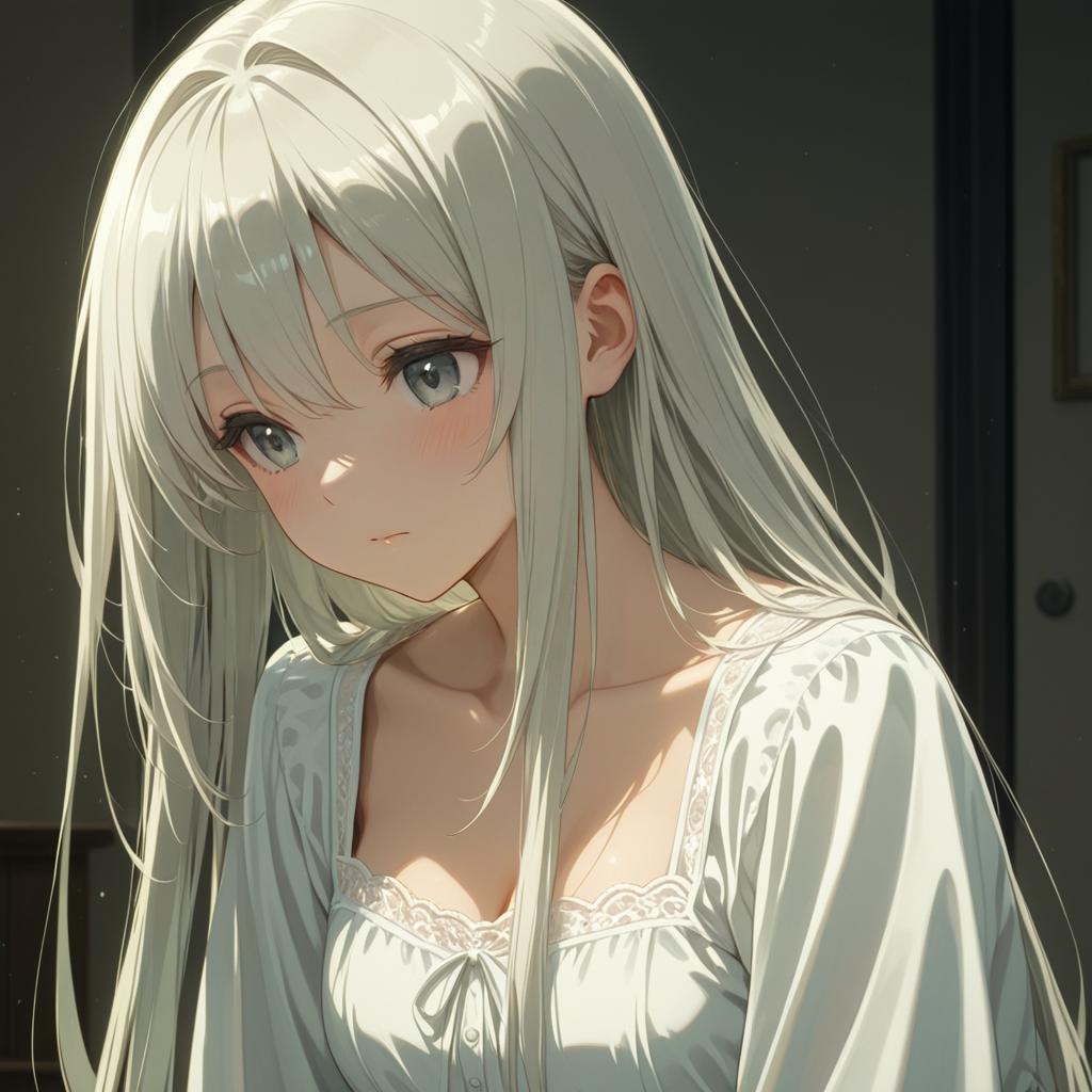 Enchanting Anime Girl in White Gown