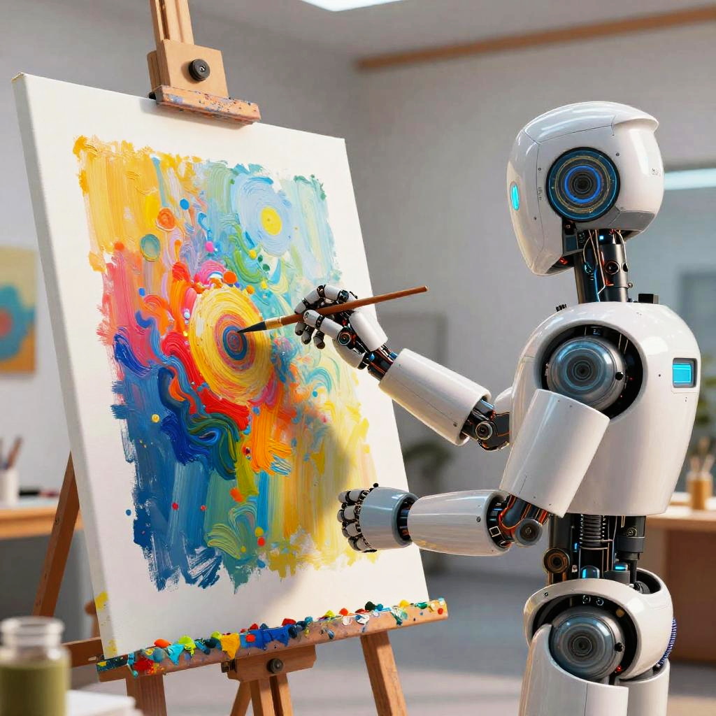 Robot Artist Creating Vibrant Digital Art