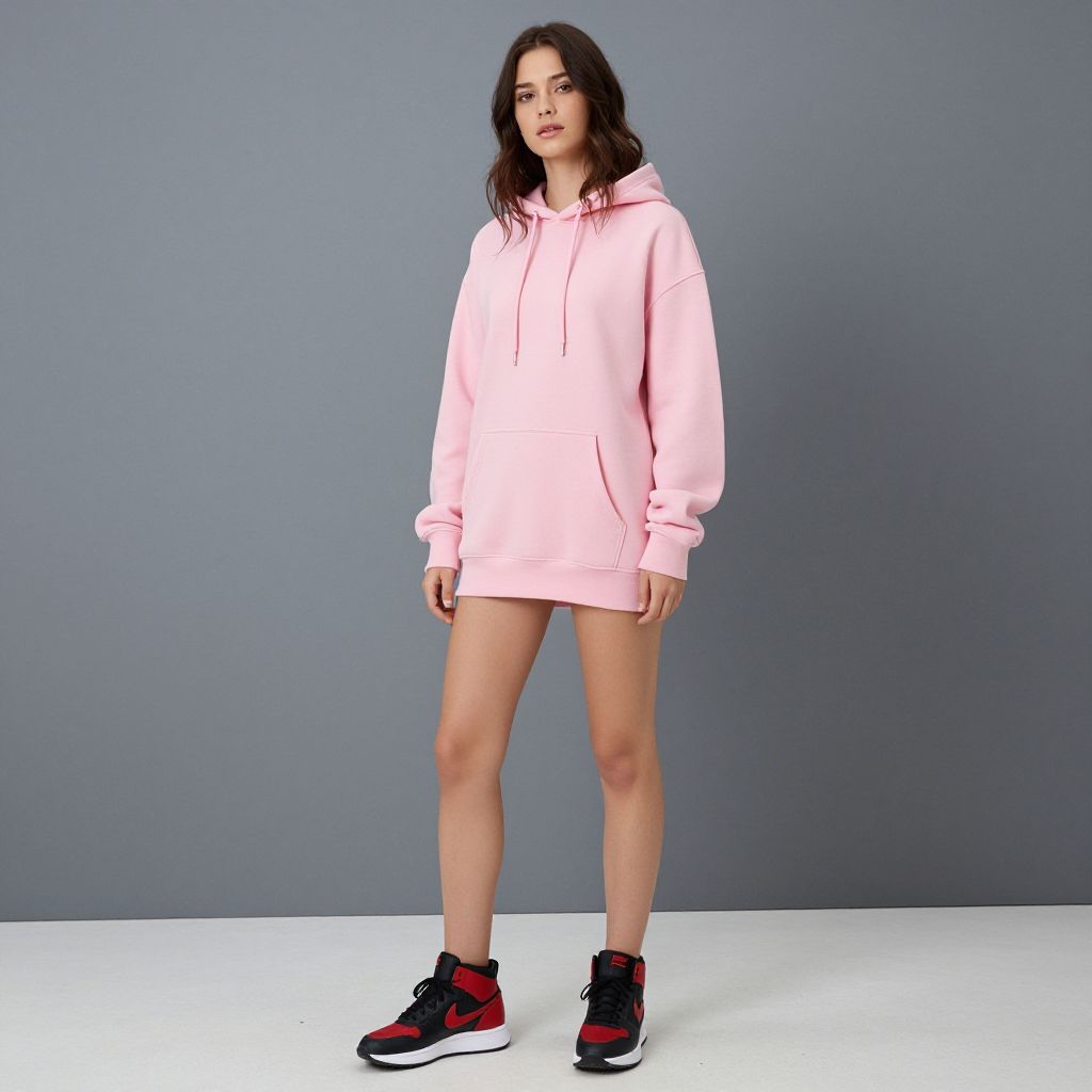 Female Model in Pink Hoodie and Sneakers