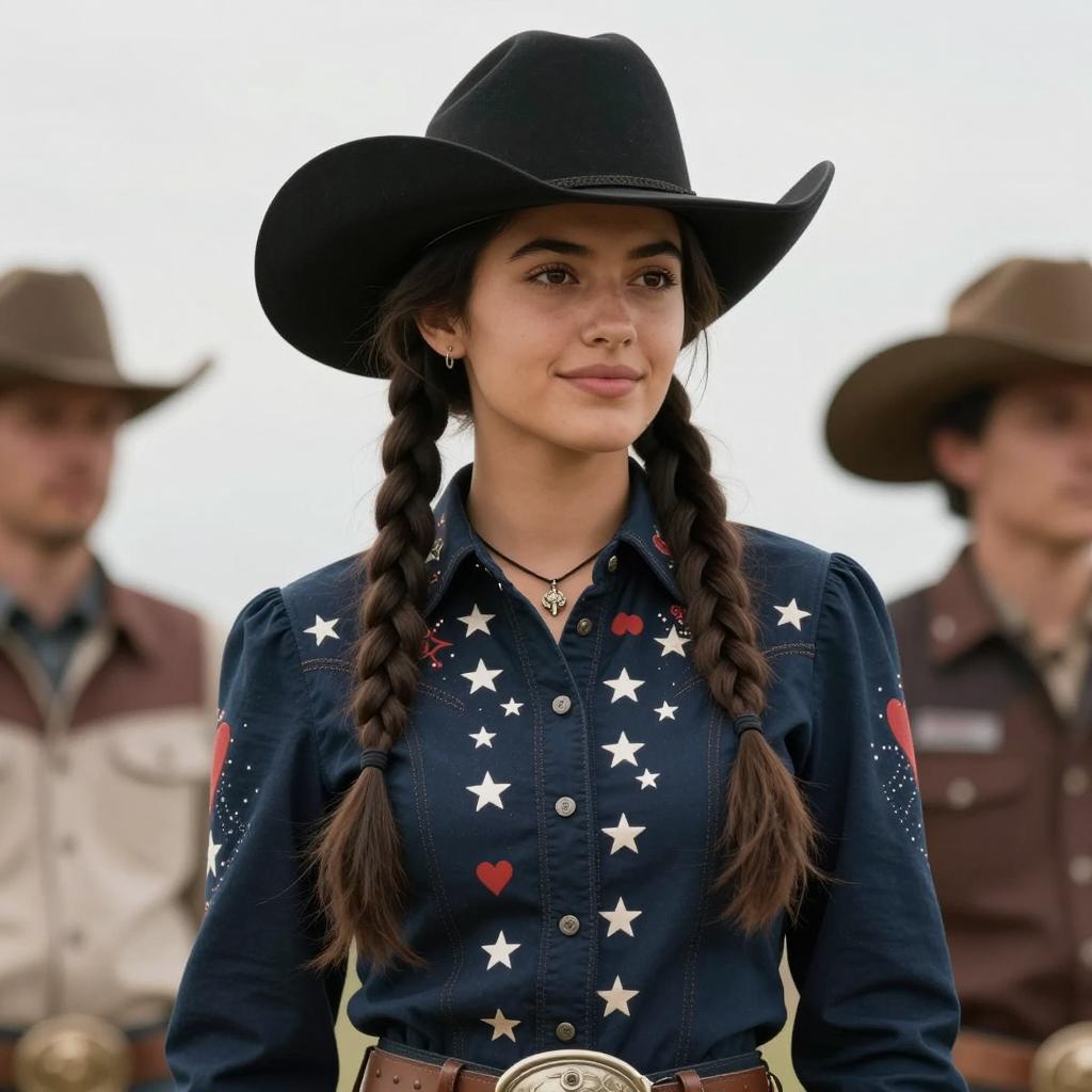 American navy costume, photorealistic, female naval officer, close-up, focused expression, light brown wavy hair in two braids, white naval cap with gold emblem, dark blue naval uniform with gold buttons and white stripes, outdoor setting, blurred background of other naval officers and American flag, daytime, bright natural light, realistic ures, high detail, focused on face and upper body, realistic colors, military ceremony, stern and confident, anime-like beauty, sharp contrast, clear shadows and highlights
