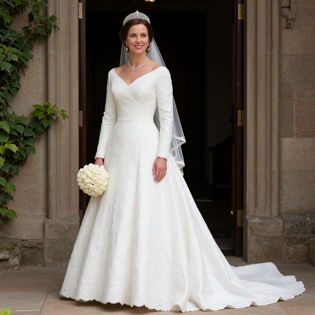 Wedding Dress Princess Mary Teck, woman in a wedding dress posing for a picture
