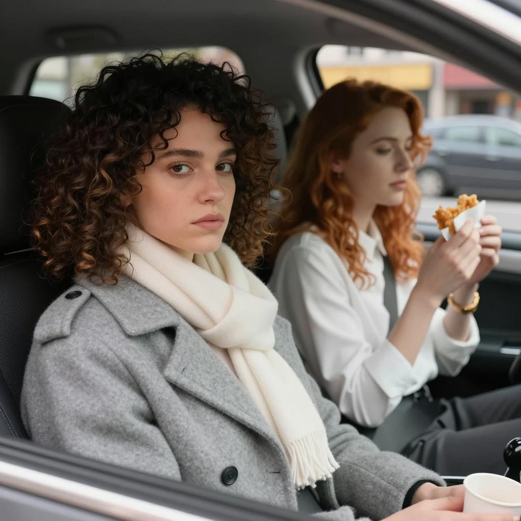Stylish Woman with Car in Mist