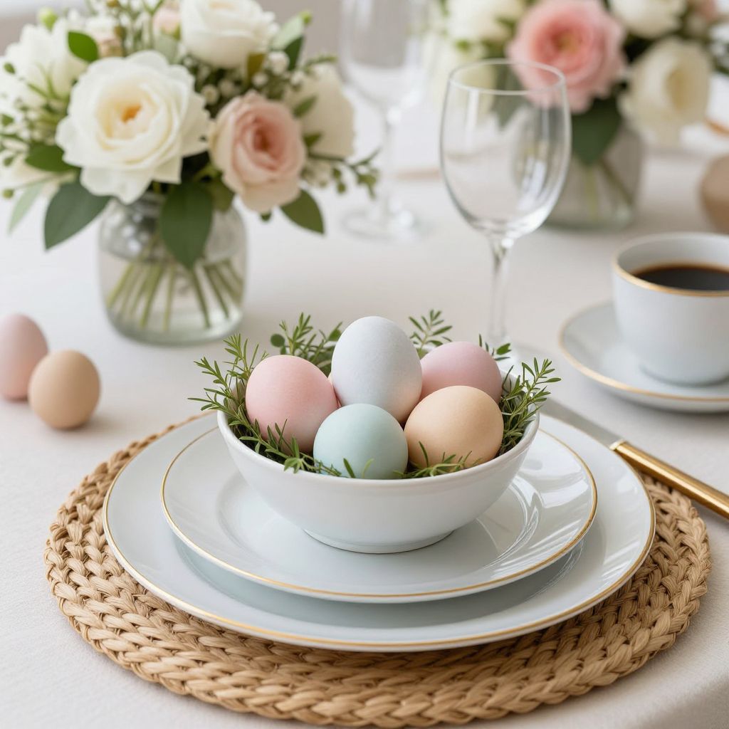 Elegant Easter Table Setting with Pastel Eggs