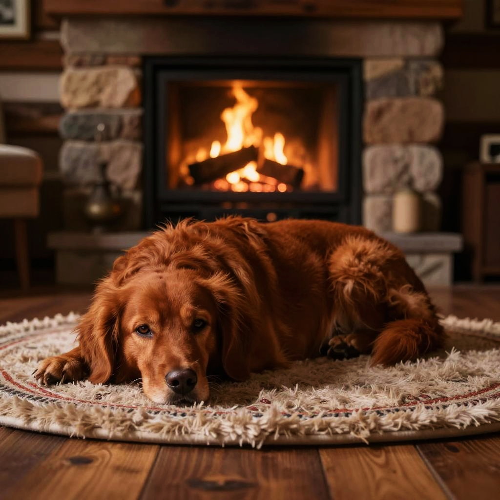 Redhead Dog on Cozy Fireplace Rug