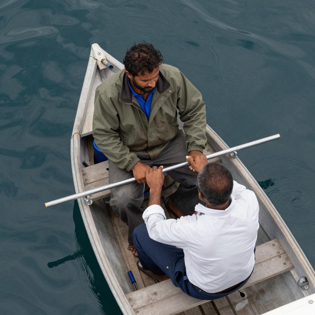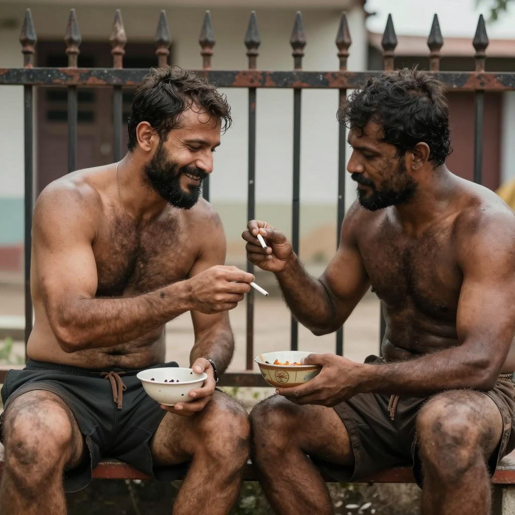 Men in Rustic Hut by Water