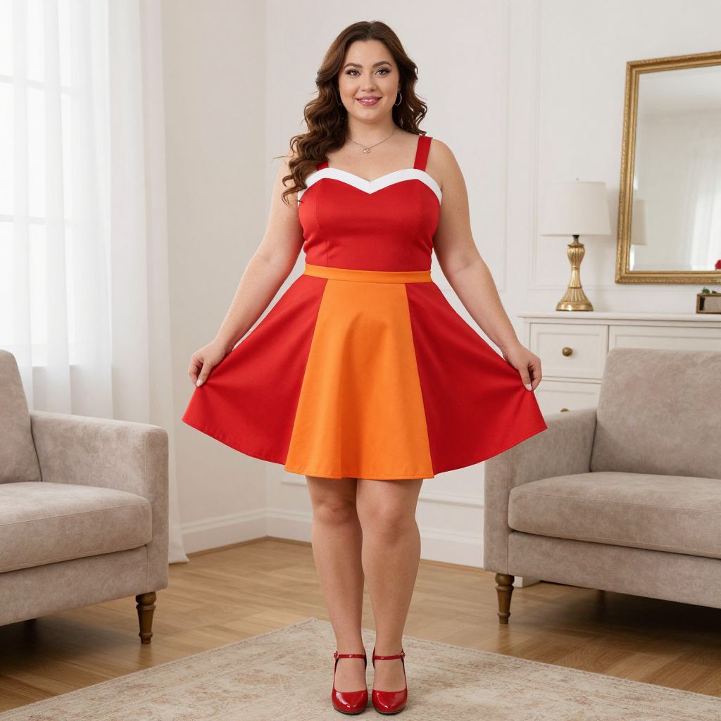 Plus Size Skirts Costume, woman in a red and orange skirt standing in a room
