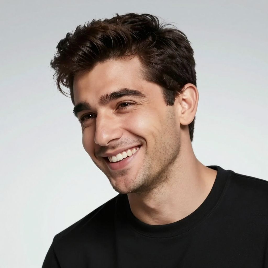 Hasbulla image, dynamic close-up of Hasbulla smiling warmly, soft lighting, smooth texture, minimalistic background with subtle gradients, photorealistic style, capturing joyful expression