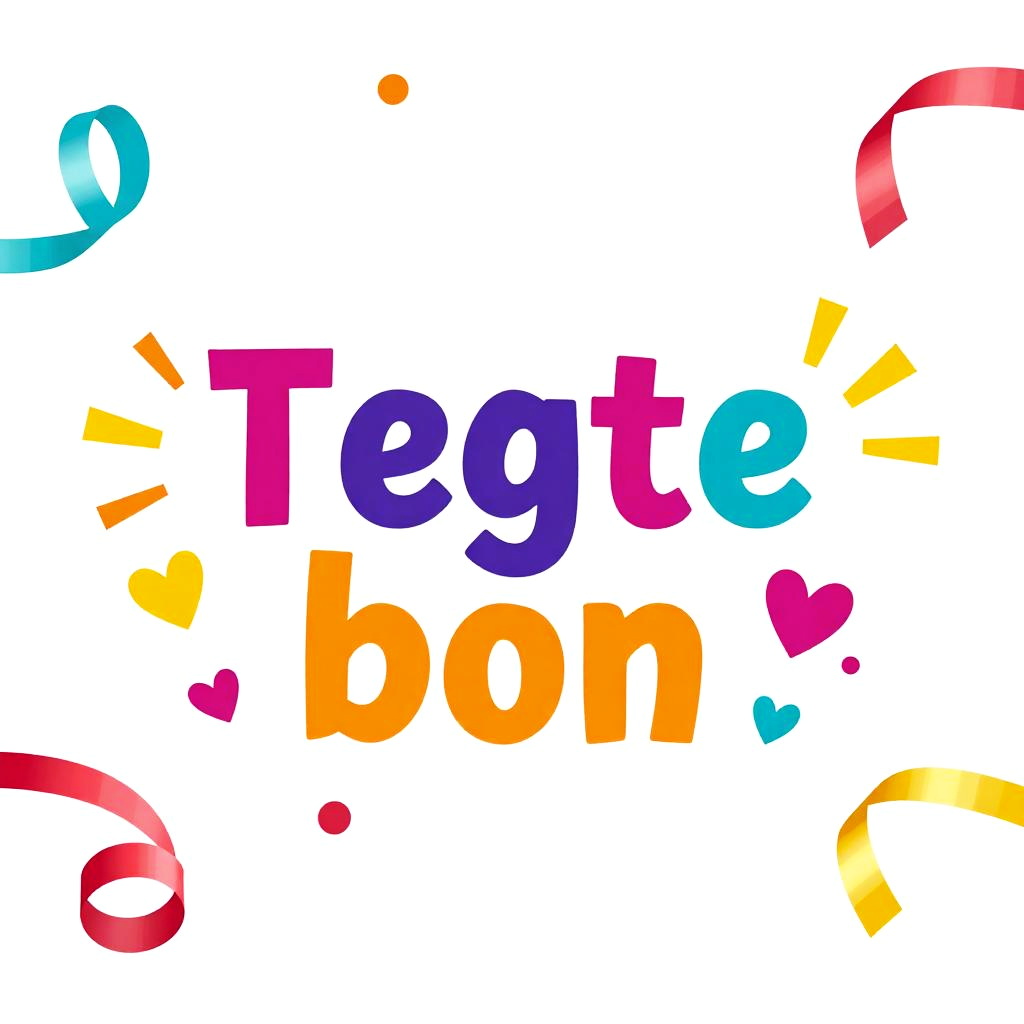 Bright and playful tegoedbon design with colorful balloons, bold lettering, and cheerful icons like gift boxes and stars, set against a sky blue background, perfect for celebrations and special occasions, vibrant and energetic style.