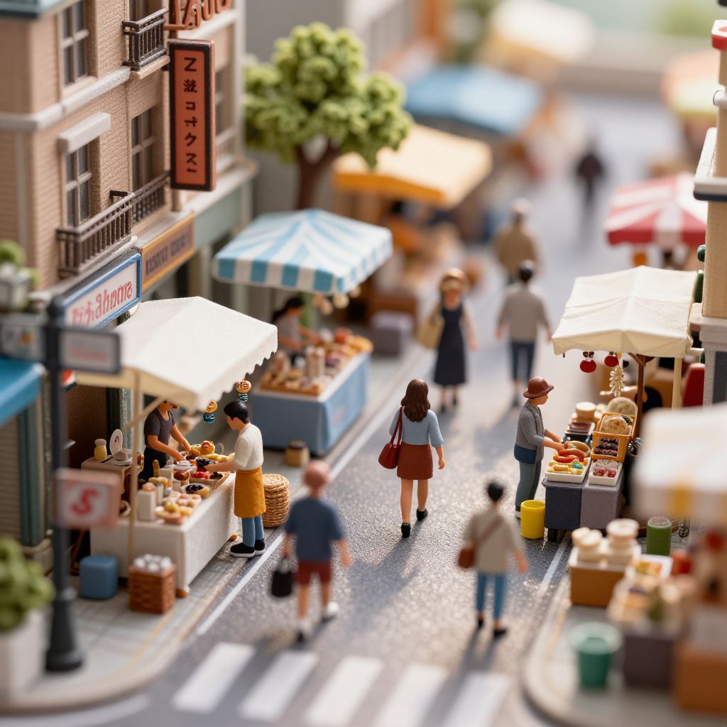 Ultra-Realistic Miniature City Market Scene