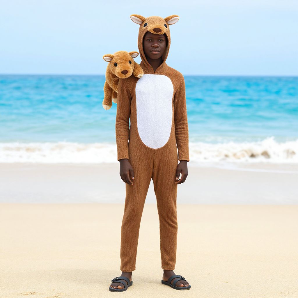 Sea themed costume, 1boy, male focus, solo, animal on shoulder, standing, full body, sandals, dark skin, dark-skinned male