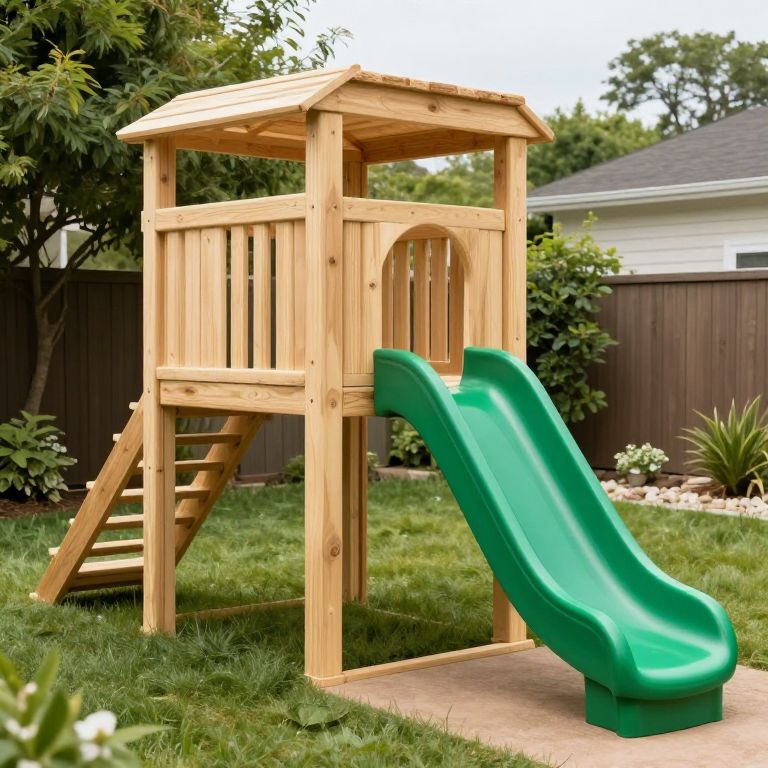 Wooden Backyard Play Fort with Slide