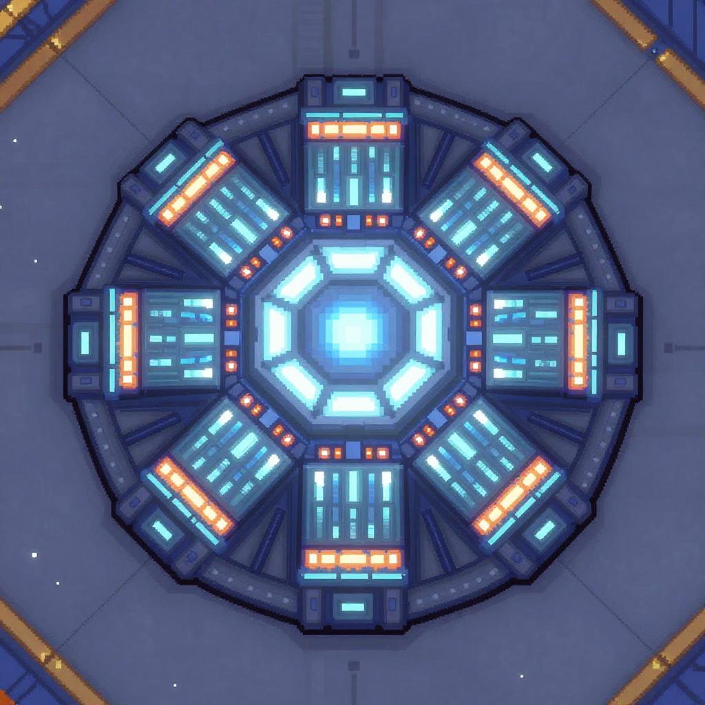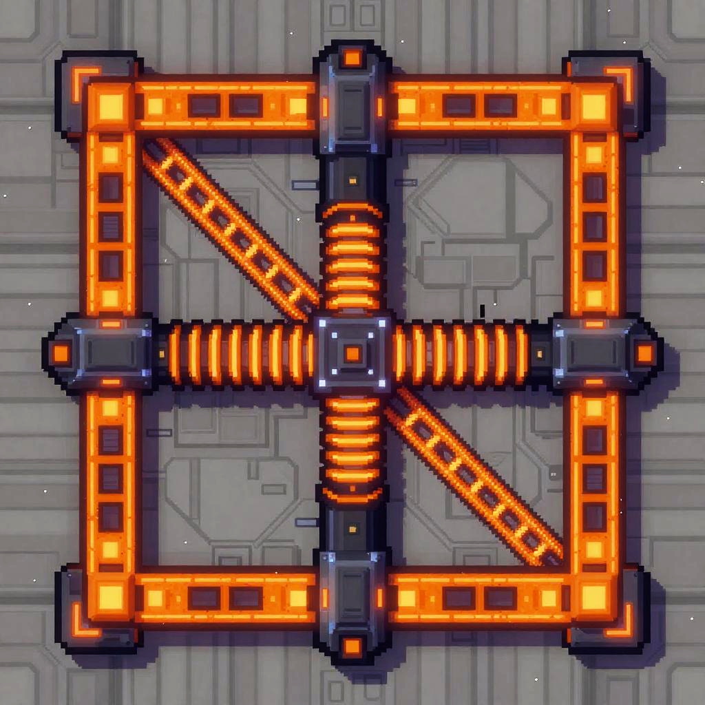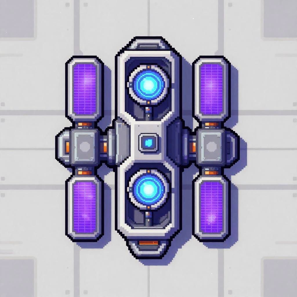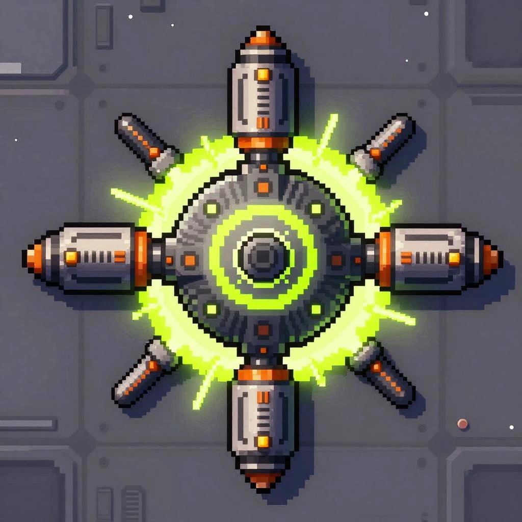2D thermal plasma projector sprite design, top-down view, futuristic sci-fi style, detailed coolant veins, pressure gauges rendered with crisp pixel art, glowing glowing amber accents, vibrant palette, strong silhouette, modular panels, high-contrast shading, clean outline, seamless tiling ready, set against a neutral starship deck, game asset concept