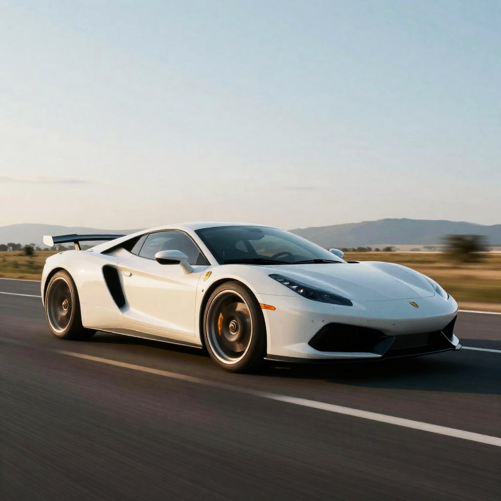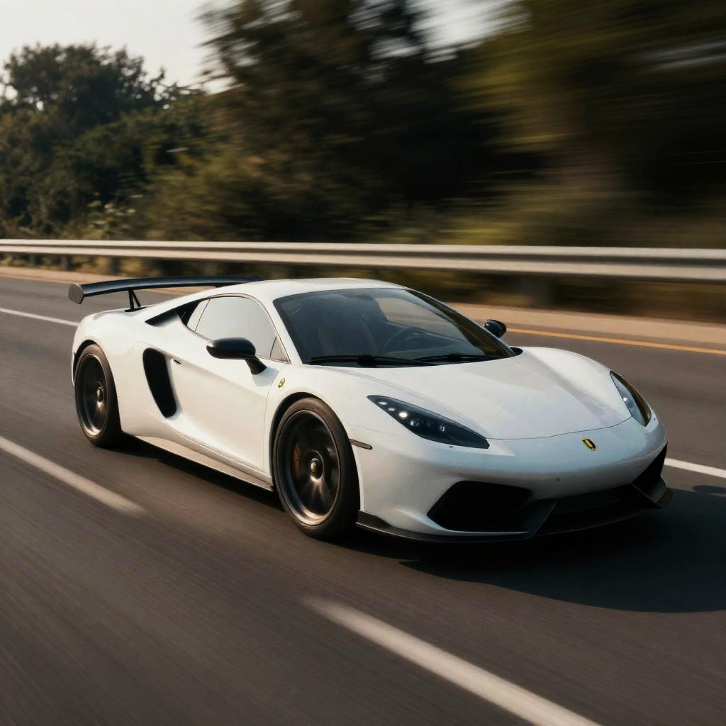 Sportcar, hyperrealism, high detail, octane render, cinematic, in motion, motion blur, wide angle, 35 mm, f. 14, by mario testino