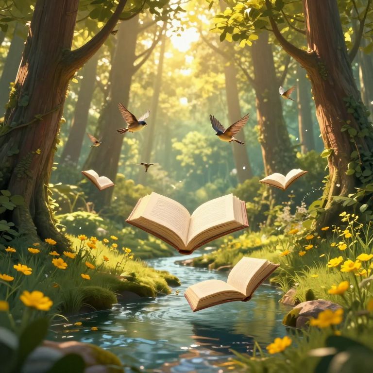 An oil painting depicting a surreal scene where a verdant garden appears to be sprouting from an open book resting on a desolate desert. The sun sets behind the scene, casting elongated shadows across the sand and bathing the flourishing foliage in warm, vibrant hues. From a high vantage point, the viewer looks down upon this enigmatic landscape, feeling both captivated by the mysterious juxtaposition of elements and envious of the life thriving amidst the pages.