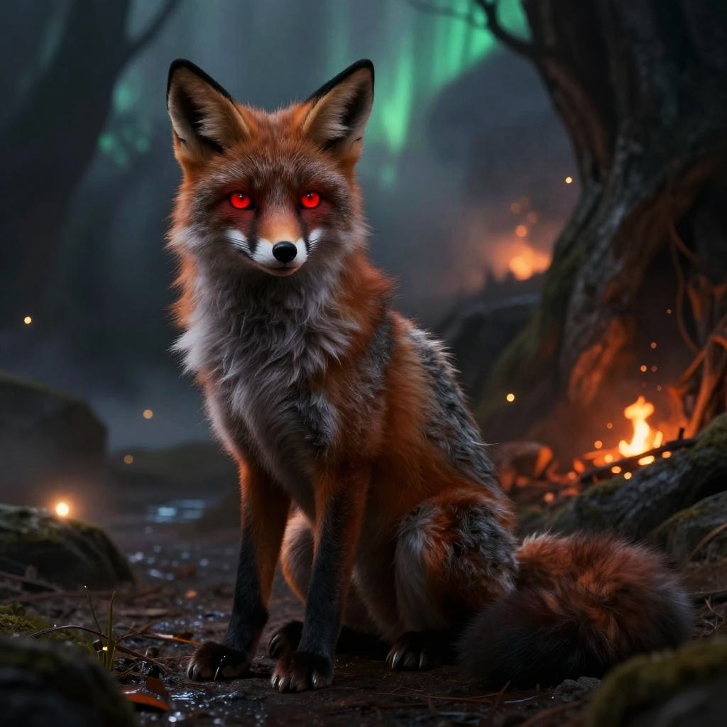 Feral Fluffy Umbreon with Glowing Red Eyes in Mystical Forest