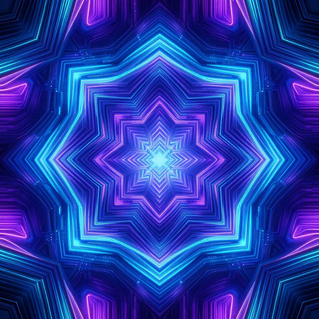 AI pattern generator creating intricate, colorful geometric patterns with seamless symmetry, glowing neon lines, futuristic vibes, high detail, digital art style blending technology and abstract design, vibrant palette with blues and purples, 4K resolution