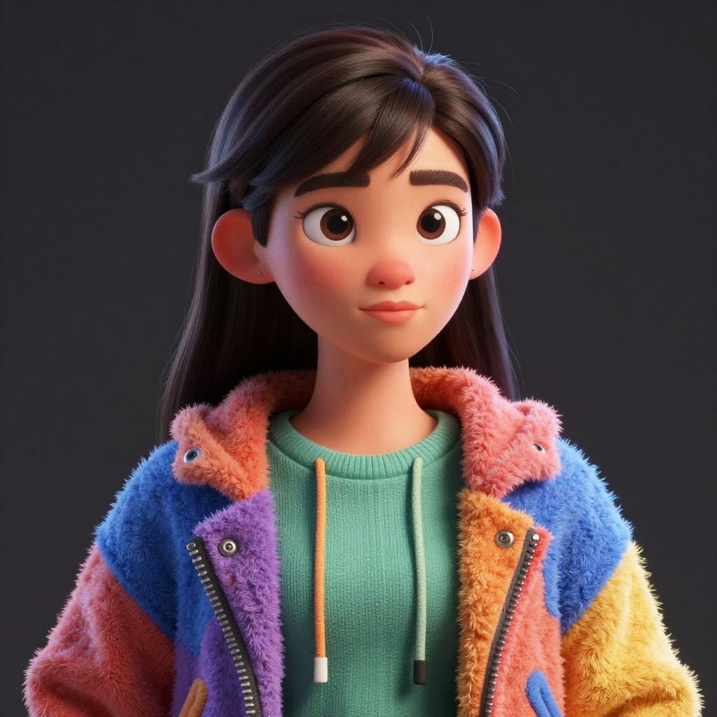 Convert photo to caricature portrait, emphasize prominent facial traits like eyes and smile, colorful exaggerated style, bold outlines, whimsical and fun atmosphere, textured digital brush strokes, cartoonish yet detailed rendering with artistic flair.
