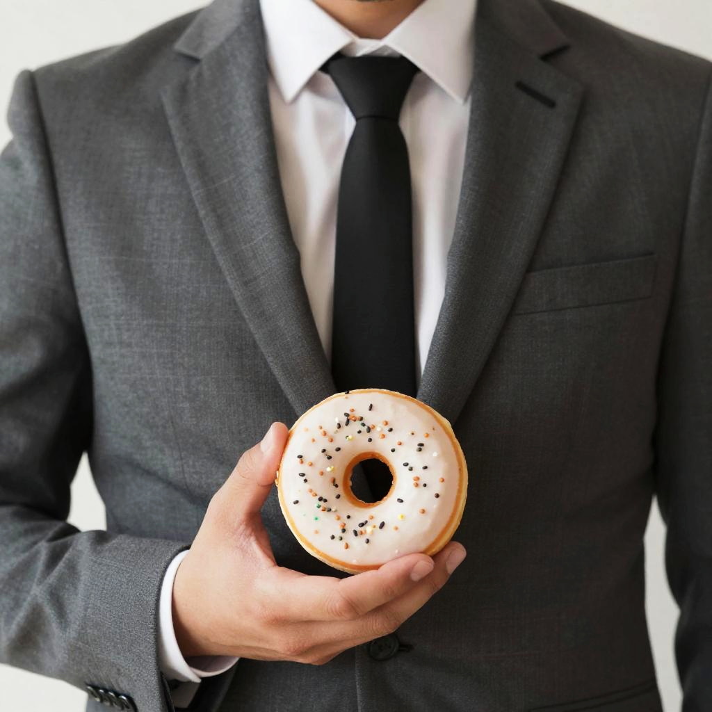 Man in Suit Holding Donut
