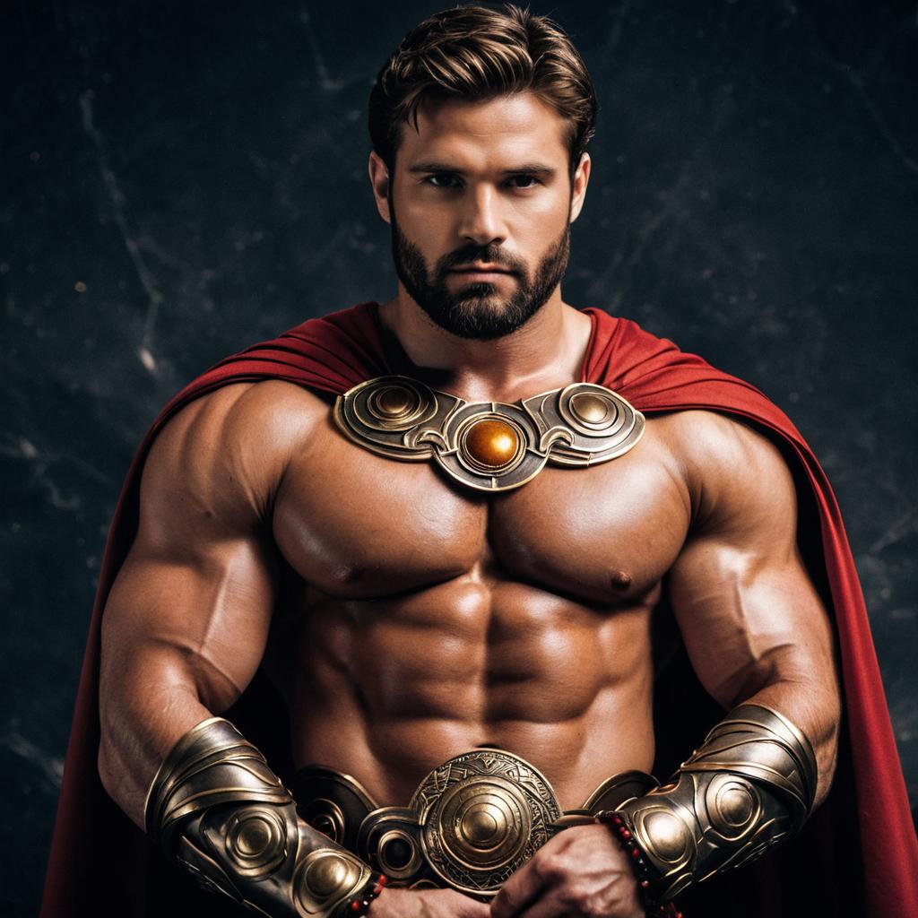 Plus size zeus costume,1boy, male focus, solo, muscular, muscular male, beard, abs, facial hair, pectorals, nipples, navel, bara, cloud, sky, long hair, crown, mature male, outdoors, white hair, large pectorals, looking at viewer