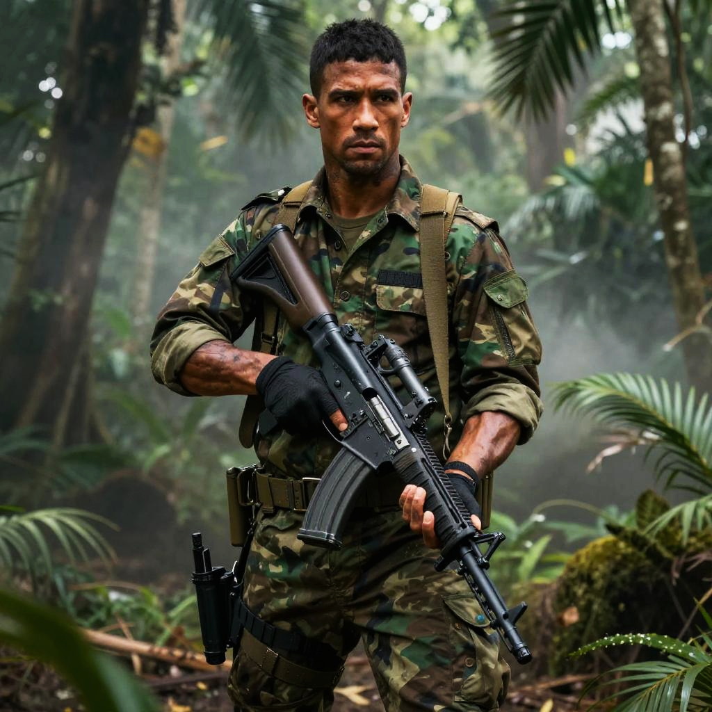 Rugged Soldier in Jungle Combat