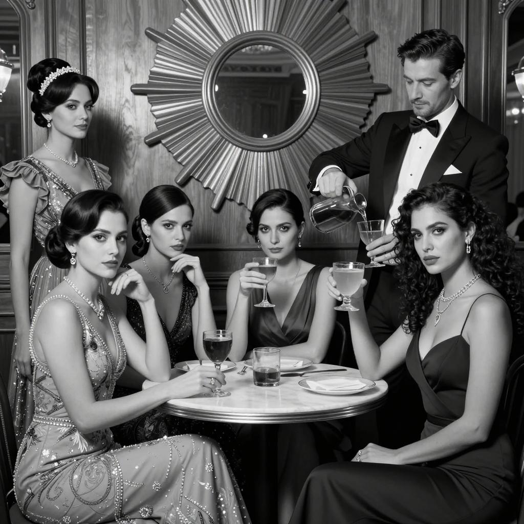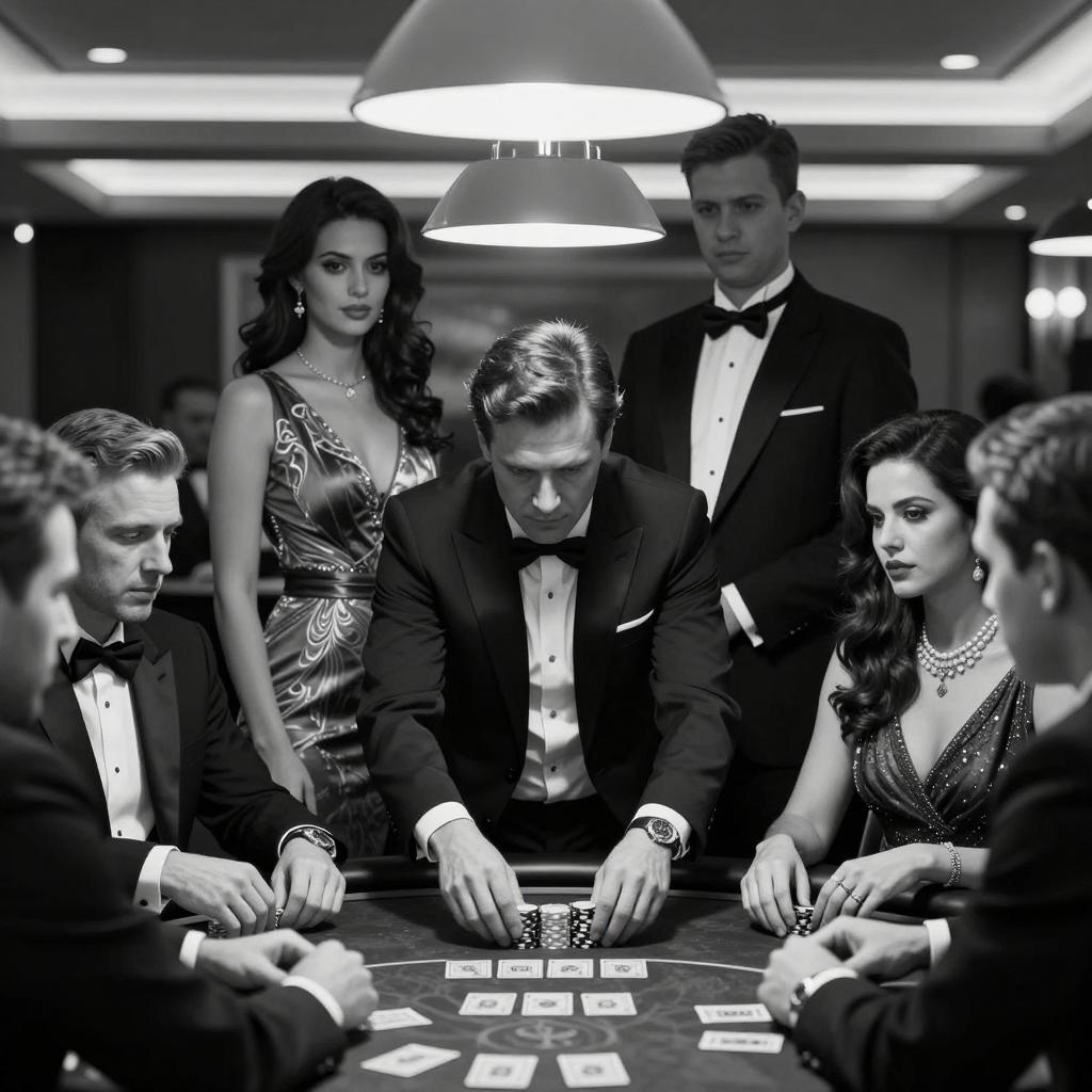 Intense Formal Casino Scene in Monochrome