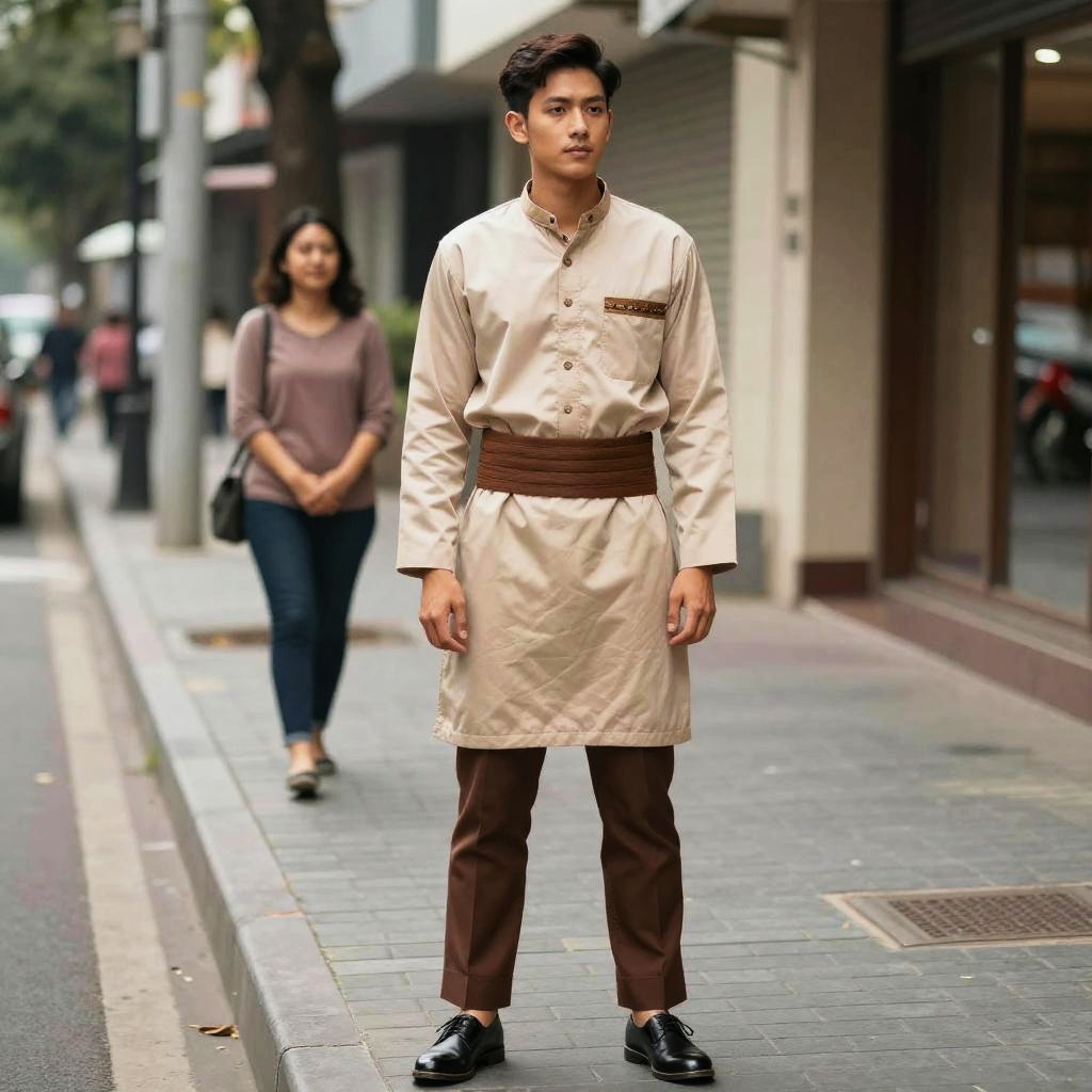 Vietnamese Groom Outfit, dressed in a white suit and a gold hat