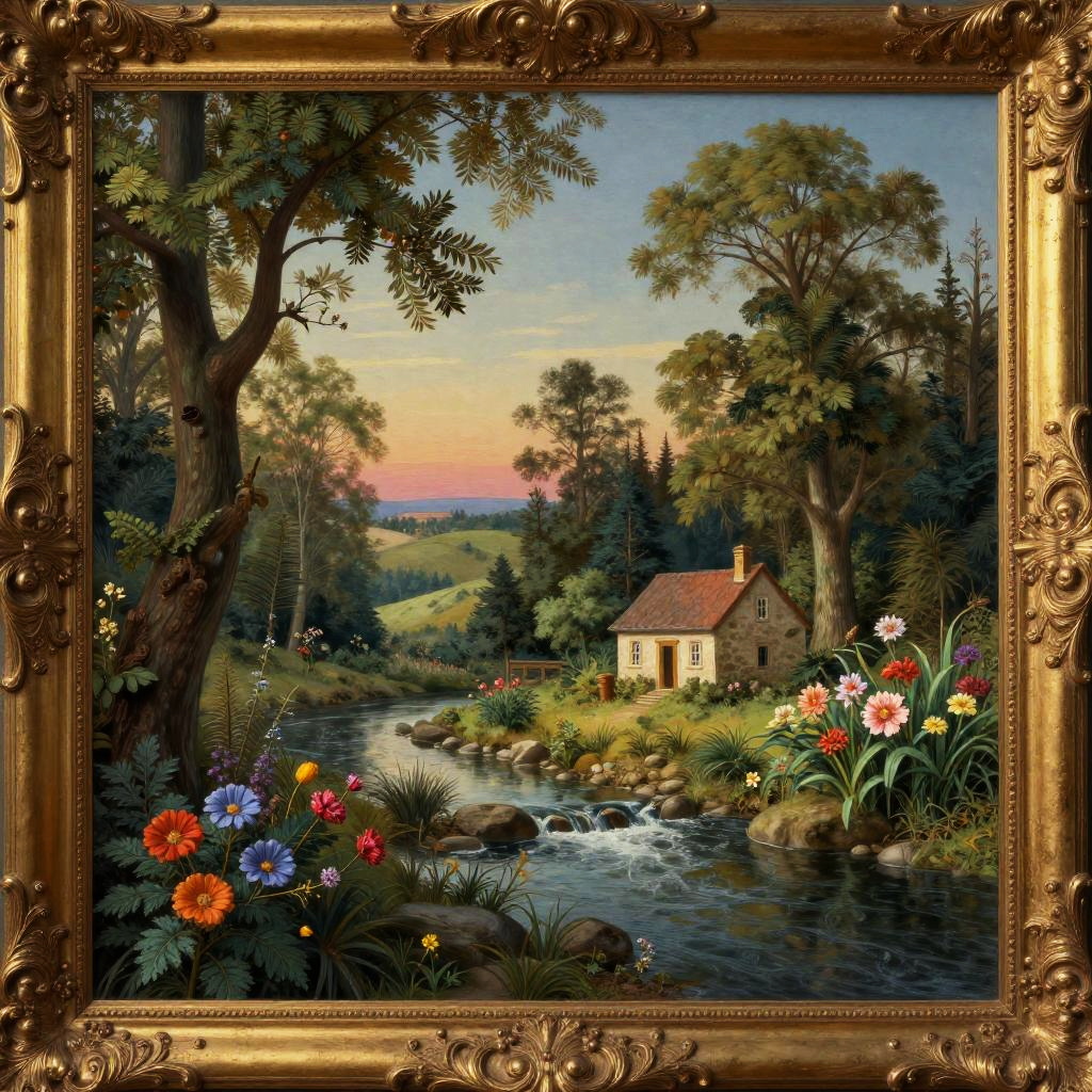 A classic landscape painting of nature's glory, by Thomas Allom and by William Eggleston, shiny intricate 3D graphics octane render highly detailed 8k HDR UHD high quality professional unreal engine PS5 cinematic vray Cuno Amiet