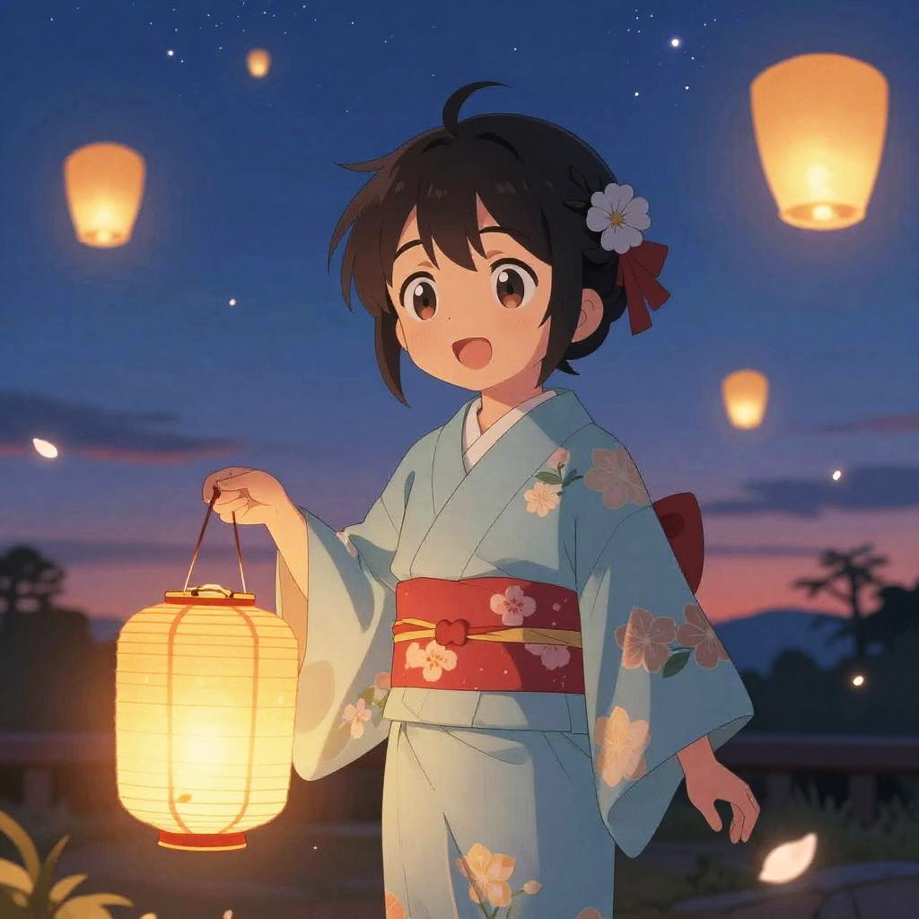 Anime Character in Kimono with Lanterns
