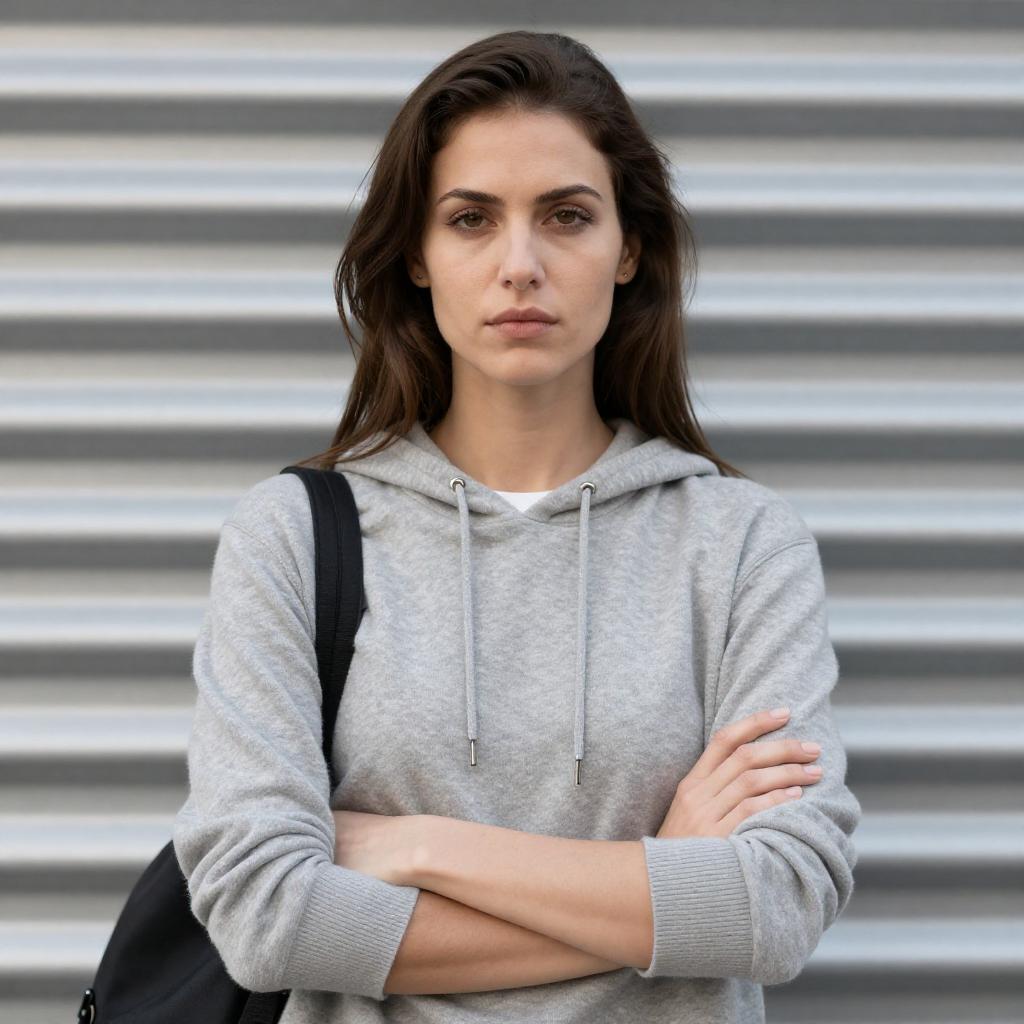Photograph of several white flyers with a photo of a woman with light skin and brown hair, lying down. Flyers are stacked and scattered on a dark surface. A black shadow crosses the top. The word "MISSING" is prominently displayed in bold letters on each flyer.