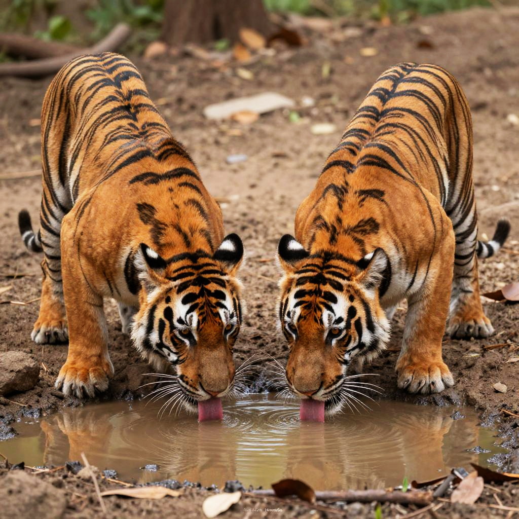Bengal Tigers Drinking at Waterhole