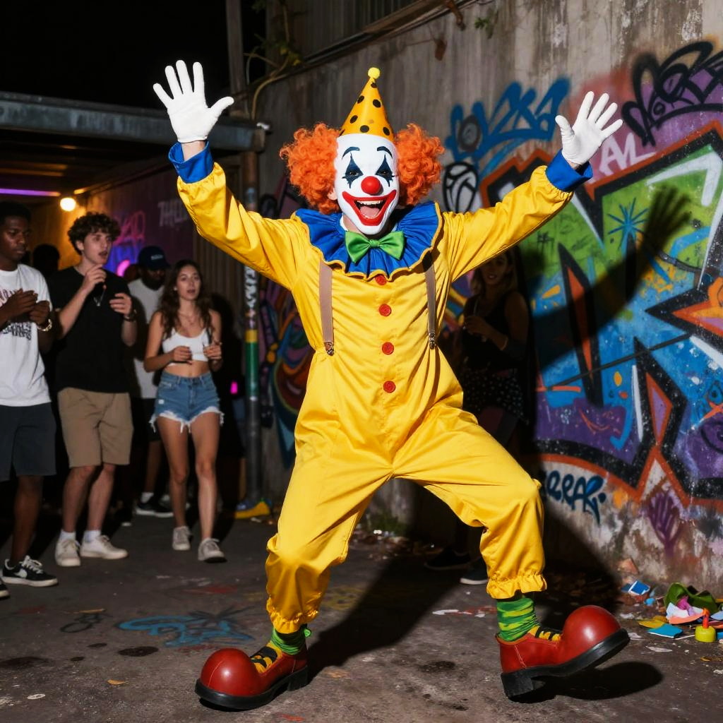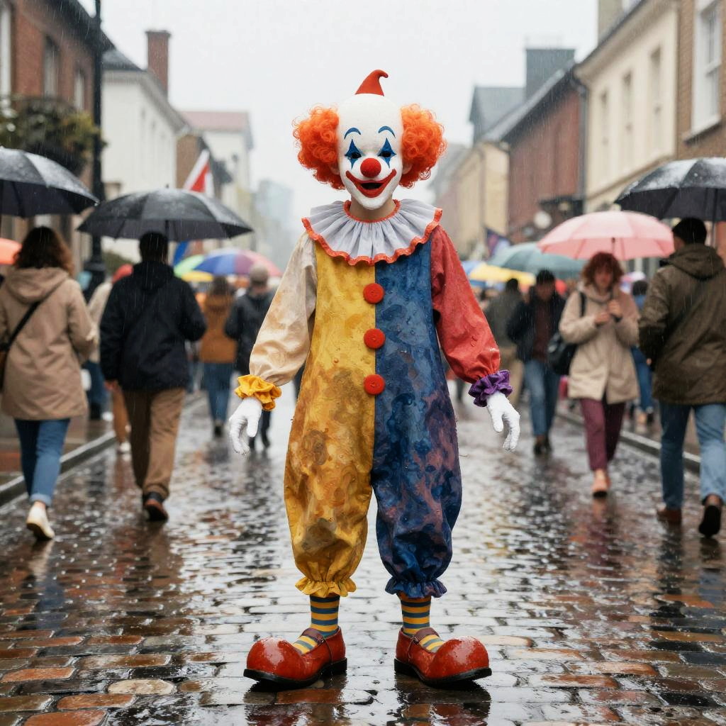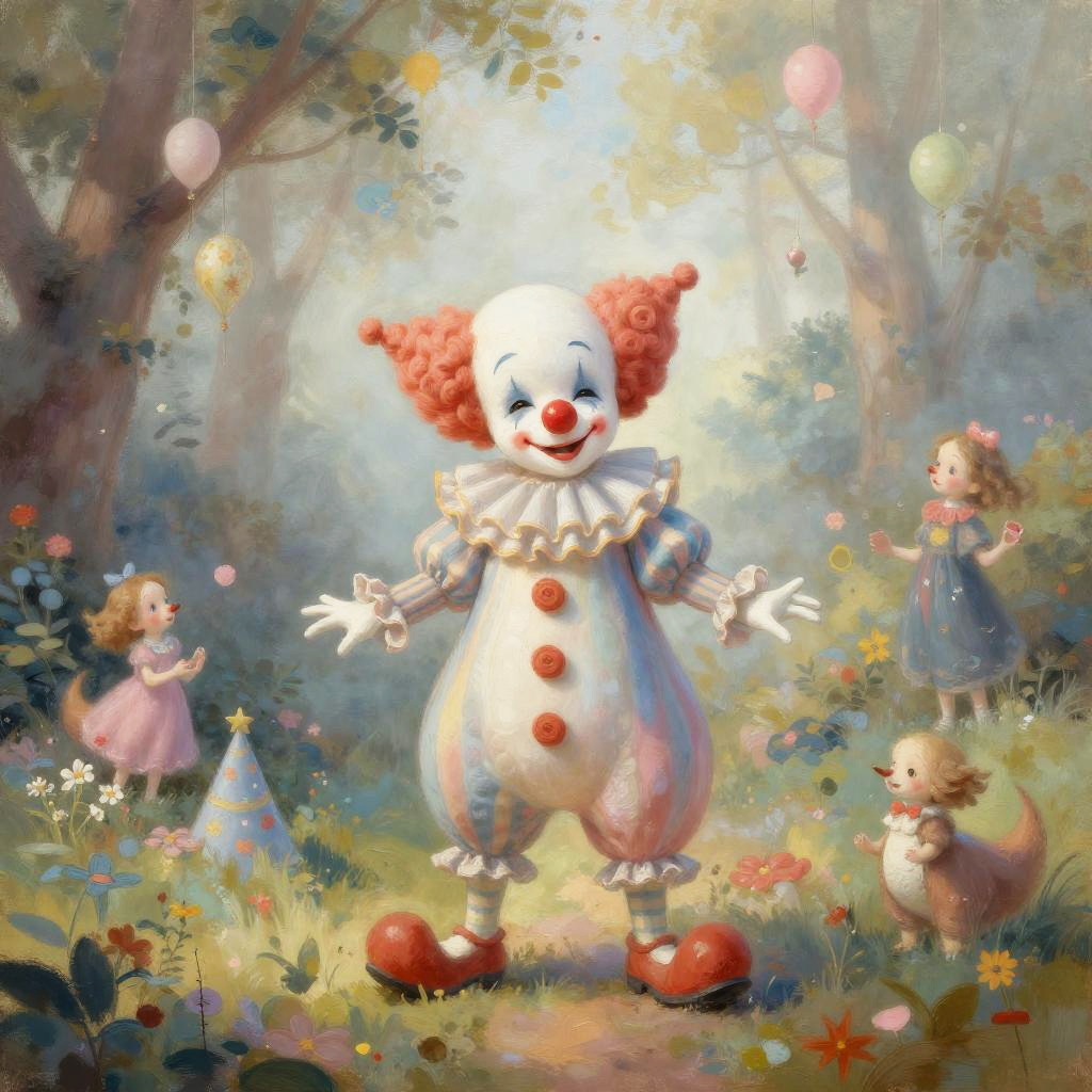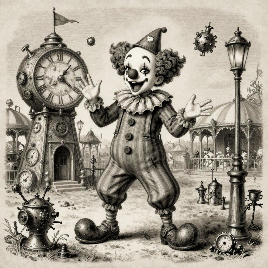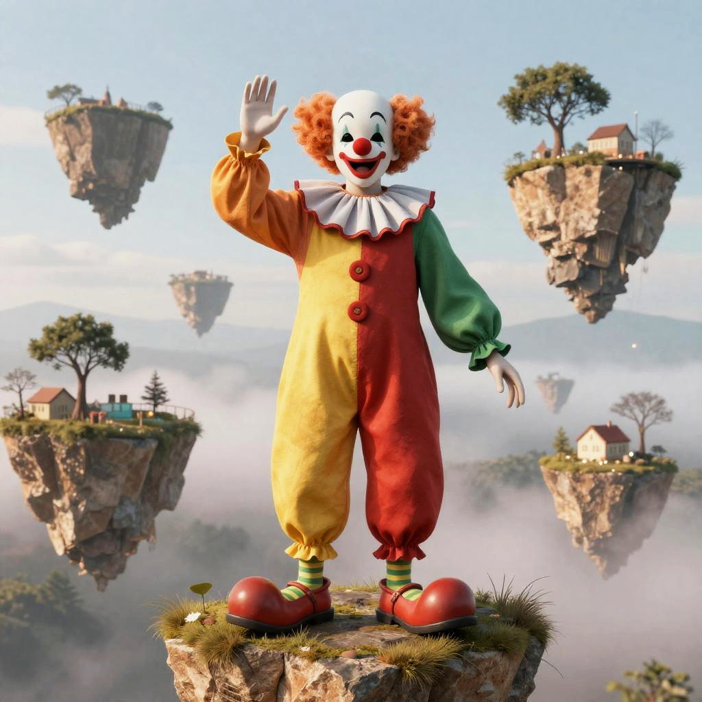 Whimsical Clown in Baroque Theater
